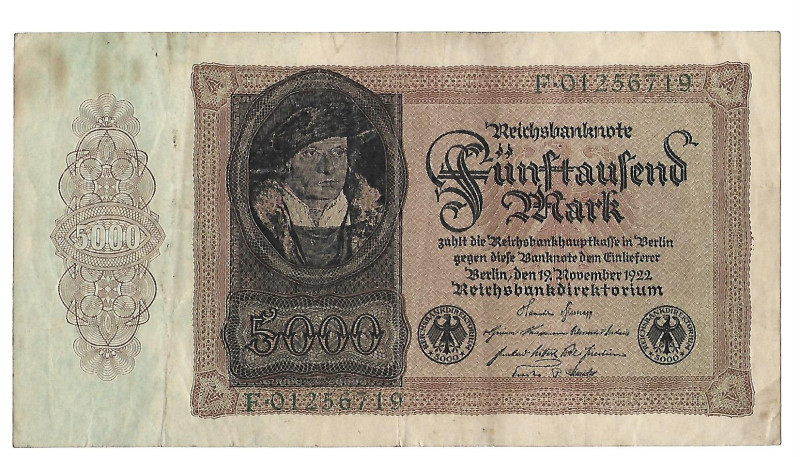 Banknot 1000 marek (Niemcy 1922) Stan: widoczny na załączonych scanach - OBIEGOWY.