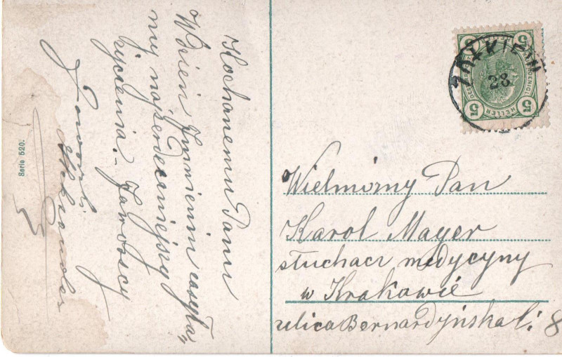 Pocztówka z Żółkiewa do Krakowa