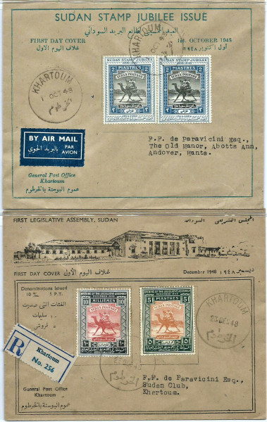 Dwie koperty FDC-polecona i lotnicza z Sudanu 1948. Stan zachowania bardzo dobry. Wyprzedaż kolekcji! Polecam!
