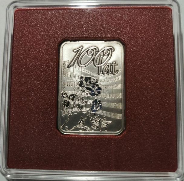 Przedmiotem aukcji jest sztabka kolekcjonerska 100 lat: