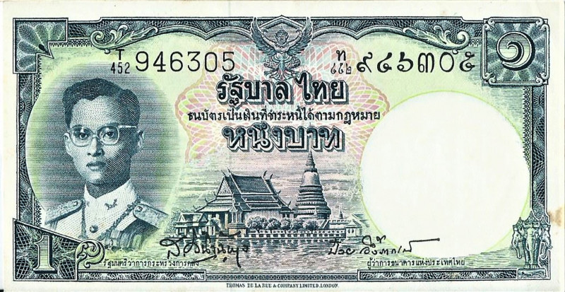 Banknot z Tajlandii 1955 - 1 baht. Stan zachowania AUNC. Wyprzedaż kolekcji! Polecam!