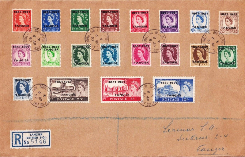 Rzadka koperta polecona z kompletną serią z Tanger 1957.