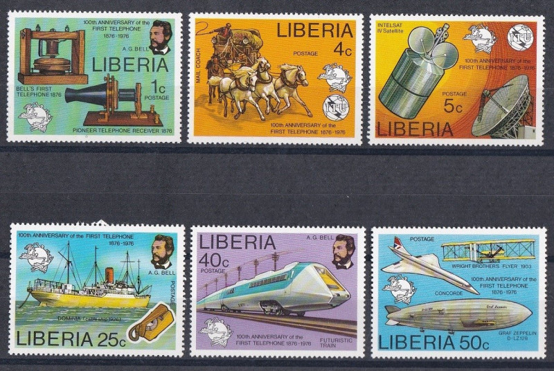 Telekomunikacja 100 rocznica telefonu Liberia 1976 czyste **