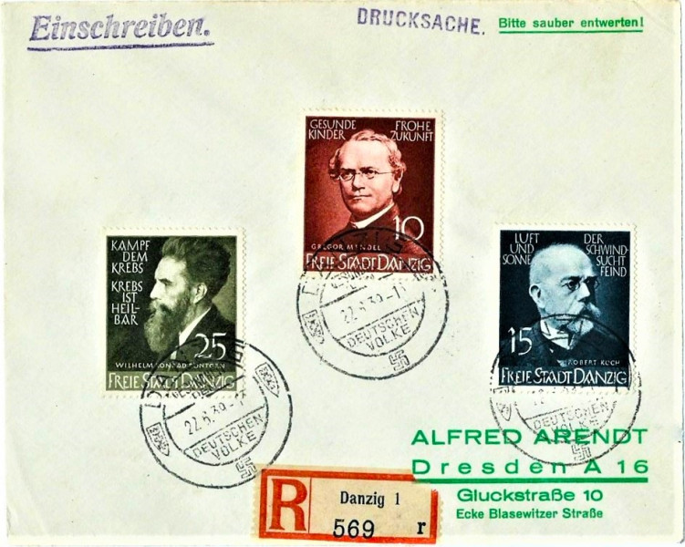 Koperta polecona z WMG 1939 z kompletną serią.