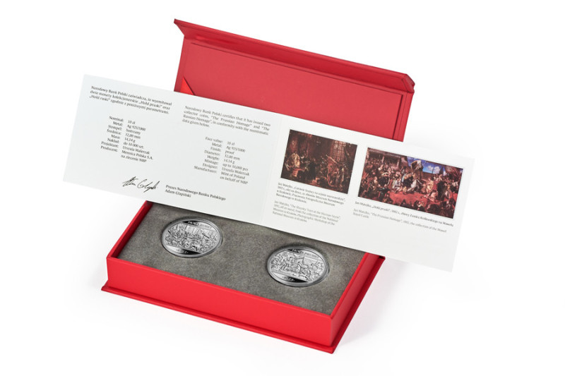 Dwie monety srebrne w pudełku NBP + Certyfikat + Folder Szybka wysyłka !!!
